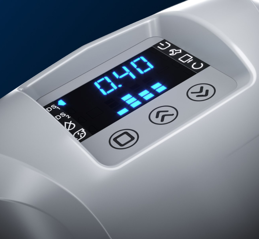 Display som visar återstående kapacitet av samtliga patroner, aktuell status och diverse felkoder och som gör det enkelt för dig att kontrollera systemets funktion, drift och underhåll.